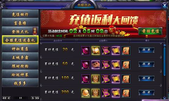 合服后将开启全新的每日充值活动,在合服完成后重新累计充值金额。