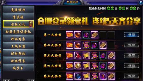 合服后,前5天每天上线即可领取免费的福利大礼哦!