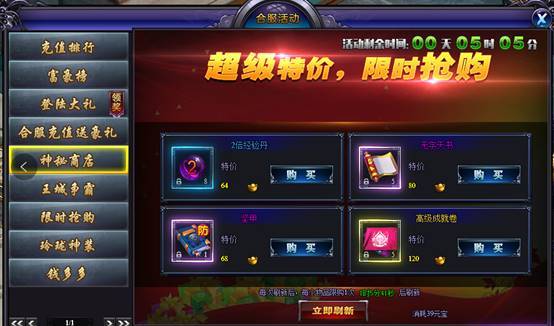 活动时间内,抢购极品道具吧,不要错过了